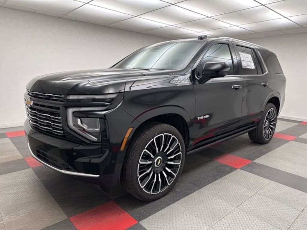 Black 2025 Chevrolet Tahoe High Country 4WD 10-Speed Automatic with Overdrive EcoTec3 6.2L V8 FOUR WHEEL DRIVE 4WD, 4WD, Black Leather, 10 Speakers, 15 Diagonal Multi-Color Head-Up Display, 1st and 2nd Row Color-Keyed Carpeted Floor Mats, 2-Speed Active Electronic AutoTrac Transfer Case, 3 Years of OnStar Services/Safety Services, 3-Spoke Wrapped Steering Wheel, 3rd Row 60/40 Power-Folding Split-Bench Seat, 3rd Row All-Weather Floor Liners, 4-Wheel Disc Brakes, 8-Way Power Driver Seat Adjuster, 8-Way Power Front Passenger Seat Adjuster, ABS brakes, Adaptive suspension, Advanced Security Package, Advanced Trailering Package, Air Conditioning, Air Ride Adaptive Suspension, All-Weather Cargo Mat, AM/FM radio: SiriusXM with 360L, Apple CarPlay/Android Auto, Auto High-beam Headlights, Auto-dimming door mirrors, Auto-leveling suspension, Automatic temperature control, AutoSense Hands-Free Power Liftgate, Blind Zone Steering Assist with Trailering, Bose 10-Speaker Centerpoint Surround Audio System Feature, Brake assist, Bright Front and Rear Door Sill Plates, Bumpers: body-color, Chrome Door Handles with Body-Color Strip, Color-Keyed Carpeting Floor Covering, Delay-off headlights, Dual Exhaust System, Dual front impact airbags, Dual front side impact airbags, Dual-Pane Power Panoramic Sunroof, Electronic Stability Control, Exterior Parking Camera Rear, Extra Capacity Cooling System, Floor Console, Four wheel independent suspension, Front Bucket Seats, Front dual zone A/C, Front fog lights, Front LED Fog Lamps, Front Pedestrian and Bicyclist Braking, Frontal Driver and Outboard Passenger Airbags, Fully automatic headlights, Glass Breakage Sensor, Heads-Up Display, Heated 2nd Row Outboard Seats, Heated door mirrors, Heated front seats, Heated rear seats, Heated Steering Wheel, Heated steering wheel, High Country Deluxe, Hill Descent Control, Hitch View with Pan/Zoom Image Adjustment, Inside Rearview Auo-Dimming Rear Camera Mirror, Integrated Trailer Brake Controller, LED Headlamps with LED Daytime Running Lamps, LED Tail Lamps, License Plate Front Mounting Package, Low tire pressure warning, Magnetic Ride Control Suspension, Max Trailering Package, Memory seat, Memory Settings, Navigation system: Google built-in compatibility (select service plan required, terms and limitations apply), Occupant sensing airbag, Outside Heated Power-Adjustable Mirrors, Overhead airbag, Panic alarm, Passenger vanity mirror, Perforated Leather Seat Trim, Power door mirrors, Power driver seat, Power Liftgate, Power passenger seat, Power Release 2nd Row Bucket Seats, Power steering, Power Tilt and Telescopic Steering Column, Power windows, Power-Retractable Assist Steps, Preferred Equipment Group 3LZ, Premium audio system: Chevrolet Infotainment 3 Premium, Radio data system, Radio: 17.7 Diagonal Advanced Color LCD Display, Rain sensing wipers, Rear air conditioning, Rear anti-roll bar, Rear Power Liftgate, Rear reading lights, Rear Seat Media System, Rear window defroster, Remote Keyless Entry, Remote Start, Security system, SiriusXM with 360L Trial Subscription, Smart Trailer Integration Indicator, Speed control, Speed-sensing steering, Steering wheel memory, Steering wheel mounted audio controls, Sun and Tow Package, Super Cruise, Technology & Entertainment Package, Technology Package, Telescoping steering wheel, Theft-Deterrent Alarm System, Tilt steering wheel, Traction Control, Trailer Camera Provisions, Trip computer, Universal Home Remote, USB Ports, Vehicle Inclination Sensor, Vehicle Interior Movement Sensor, Ventilated front seats, Voltmeter, Wheels: 24 x 9.5 Bright Machined, Wireless Phone Charging.