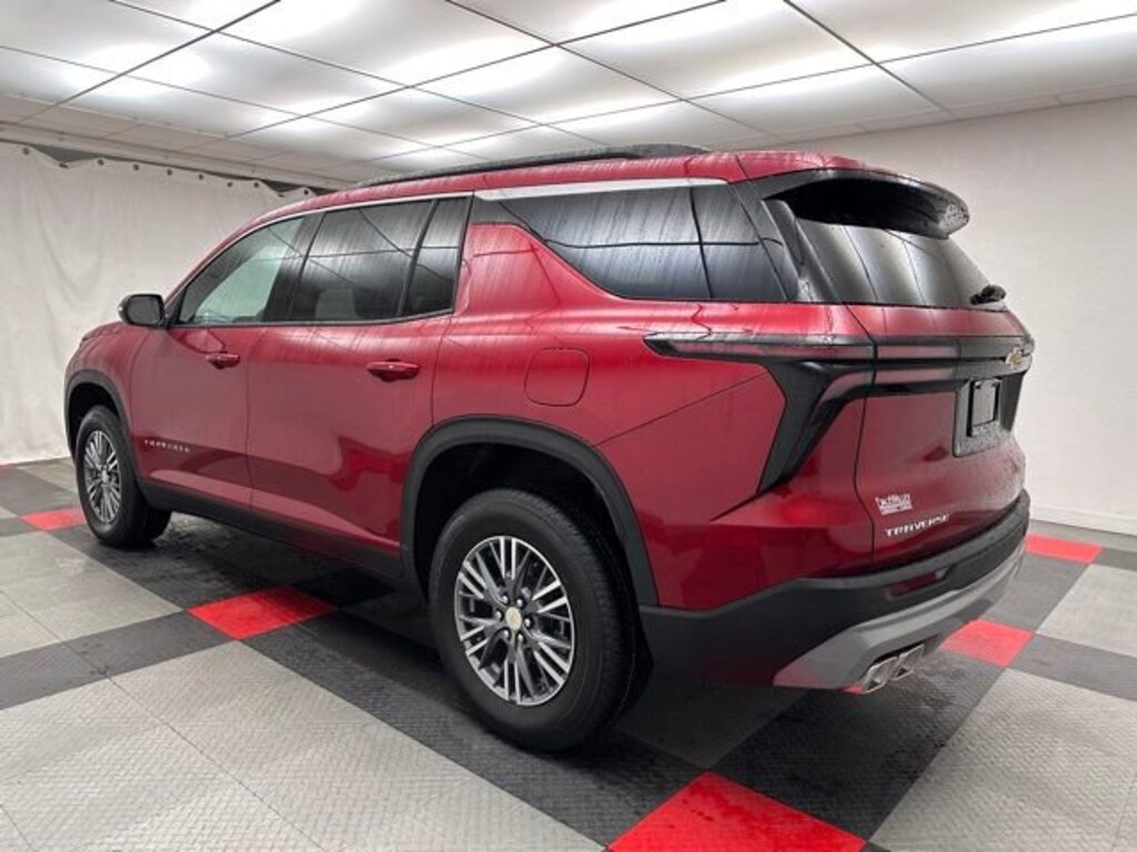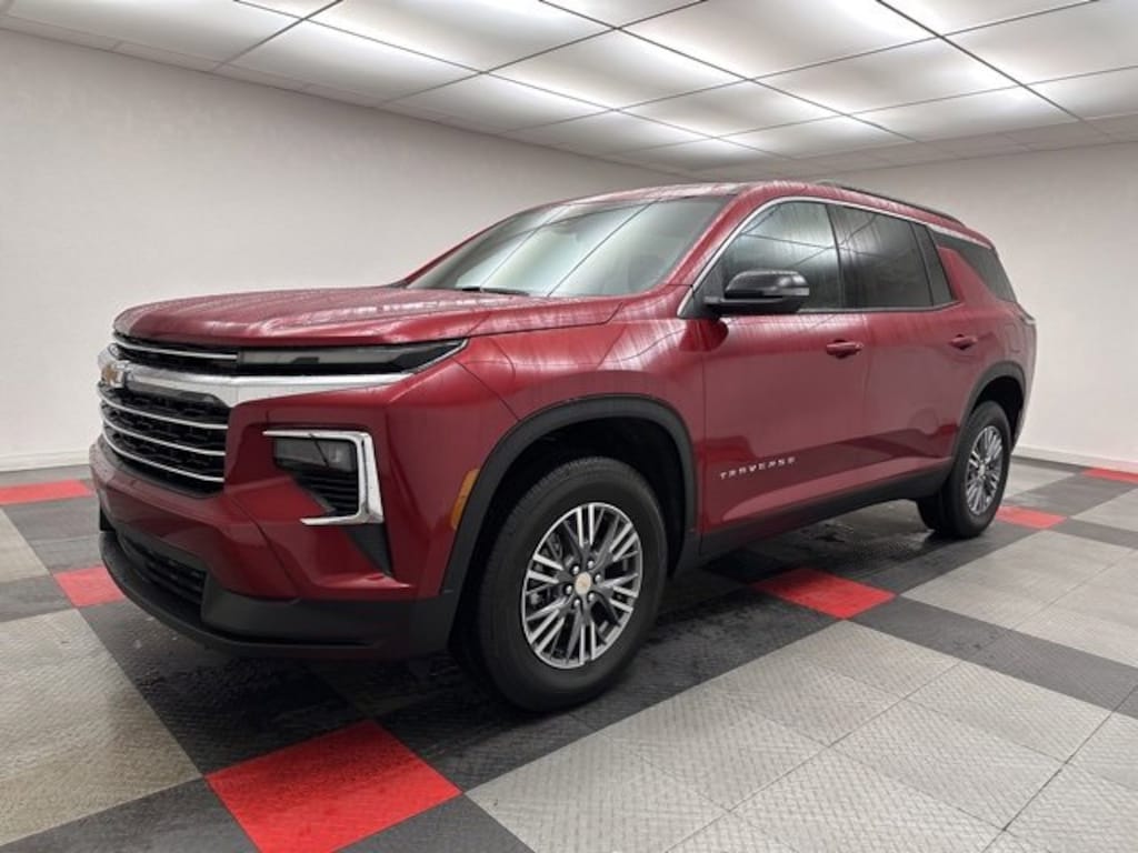 Radiant Red 2026 Chevrolet Traverse LT FWD 8-Speed Automatic 2.5L DOHC 3rd row seats: split-bench, 4-Way Manual Front Passenger Seat Adjuster, 4-Wheel Disc Brakes, 6 Speakers, 6-Speaker Audio System Feature, 8-Way Power Driver Seat Adjuster, ABS brakes, Air Conditioning, Alloy wheels, AM/FM radio: SiriusXM with 360L, Apple CarPlay/Android Auto, Auto High-beam Headlights, Automatic temperature control, Bumpers: body-color, Child-Seat-Sensing Airbag, Compass, Delay-off headlights, Driver door bin, Driver vanity mirror, Dual front impact airbags, Dual front side impact airbags, Emergency communication system: OnStar, Four wheel independent suspension, Front anti-roll bar, Front Bucket Seats, Front Center Armrest, Front dual zone A/C, Front reading lights, Fully automatic headlights, Heated door mirrors, Heated front seats, Heated steering wheel, Illuminated entry, Low tire pressure warning, Navigation System, Occupant sensing airbag, Outside temperature display, Overhead airbag, Overhead console, Passenger vanity mirror, Power door mirrors, Power driver seat, Power Liftgate, Power steering, Power windows, Premium Cloth Seat Trim, Radio data system, Rear air conditioning, Rear anti-roll bar, Rear reading lights, Rear window defroster, Remote Keyless Entry, Speed control, Speed-sensing steering, Spoiler, Steering wheel mounted audio controls, Tachometer, Telescoping steering wheel, Tilt steering wheel, Traction Control, Trip computer, Turn signal indicator mirrors, Voltmeter.