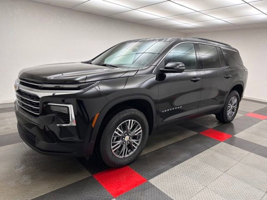 Black Metallic 2026 Chevrolet Traverse LT FWD 8-Speed Automatic 2.5L DOHC 3rd row seats: split-bench, 4-Way Manual Front Passenger Seat Adjuster, 4-Wheel Disc Brakes, 6 Speakers, 6-Speaker Audio System Feature, 8-Way Power Driver Seat Adjuster, ABS brakes, Air Conditioning, Alloy wheels, AM/FM radio: SiriusXM with 360L, Apple CarPlay/Android Auto, Auto High-beam Headlights, Automatic temperature control, Brake assist, Bumpers: body-color, Child-Seat-Sensing Airbag, Compass, Delay-off headlights, Driver door bin, Driver vanity mirror, Dual front impact airbags, Dual front side impact airbags, Electronic Stability Control, Emergency communication system: OnStar, Four wheel independent suspension, Front anti-roll bar, Front Bucket Seats, Front Center Armrest, Front dual zone A/C, Front reading lights, Fully automatic headlights, Heated door mirrors, Heated front seats, Heated steering wheel, Illuminated entry, Low tire pressure warning, Navigation System, Occupant sensing airbag, Outside temperature display, Overhead airbag, Overhead console, Passenger door bin, Passenger vanity mirror, Power door mirrors, Power driver seat, Power Liftgate, Power steering, Power windows, Premium Cloth Seat Trim, Radio data system, Rear air conditioning, Rear anti-roll bar, Rear reading lights, Rear window defroster, Remote Keyless Entry, Speed control, Speed-sensing steering, Spoiler, Steering wheel mounted audio controls, Tachometer, Telescoping steering wheel, Tilt steering wheel, Traction Control, Trip computer, Turn signal indicator mirrors, Voltmeter.