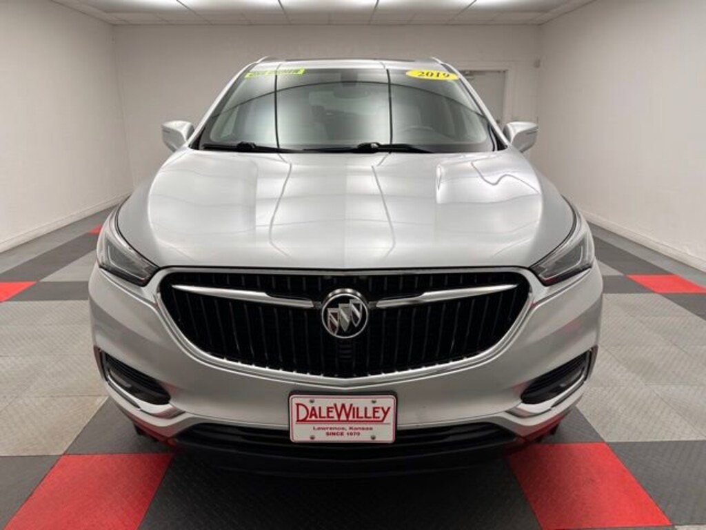 Located at Dale Willey Automotive Used Car and Truck Center / 2800 Iowa St, Lawrence, KS 66046. 2019 Buick Enclave Quicksilver Metallic Essence AWD 9-Speed Automatic 3.6L V6 SIDI VVT CLEAN VEHICLE HISTORY...NO ACCIDENTS, RECENT TRADE IN, MOONROOF SUNROOF, LEATHER, HEATED SEATS, ALL WHEEL DRIVE, ONE OWNER, Enclave Essence, 4D Sport Utility, 3.6L V6 SIDI VVT, 9-Speed Automatic, AWD, Quicksilver Metallic, Dark Galvanized/Ebony Accents w/Perforated Leather-Appointed Seat Trim, 6-Speaker Audio System Feature, 7-Passenger Seating, Apple CarPlay/Android Auto, Automatic temperature control, Electronic Stability Control, Front Bucket Seats, Front Power Sliding Moonroof, Fully automatic headlights, Heated Driver & Front Passenger Seats, Power Driver Lumbar Control Seat Adjuster, Power driver seat, Power Liftgate, Power Passenger Lumbar Control Seat Adjuster, Preferred Equipment Group 1SL, Radio: Buick Infotainment System AM/FM Stereo, Rear air conditioning, Rear Parking Sensors, Remote Keyless Entry, SiriusXM Radio, Steering wheel mounted audio controls, Turn signal indicator mirrors.Wicked Cool! A Must See. Recent Arrival!