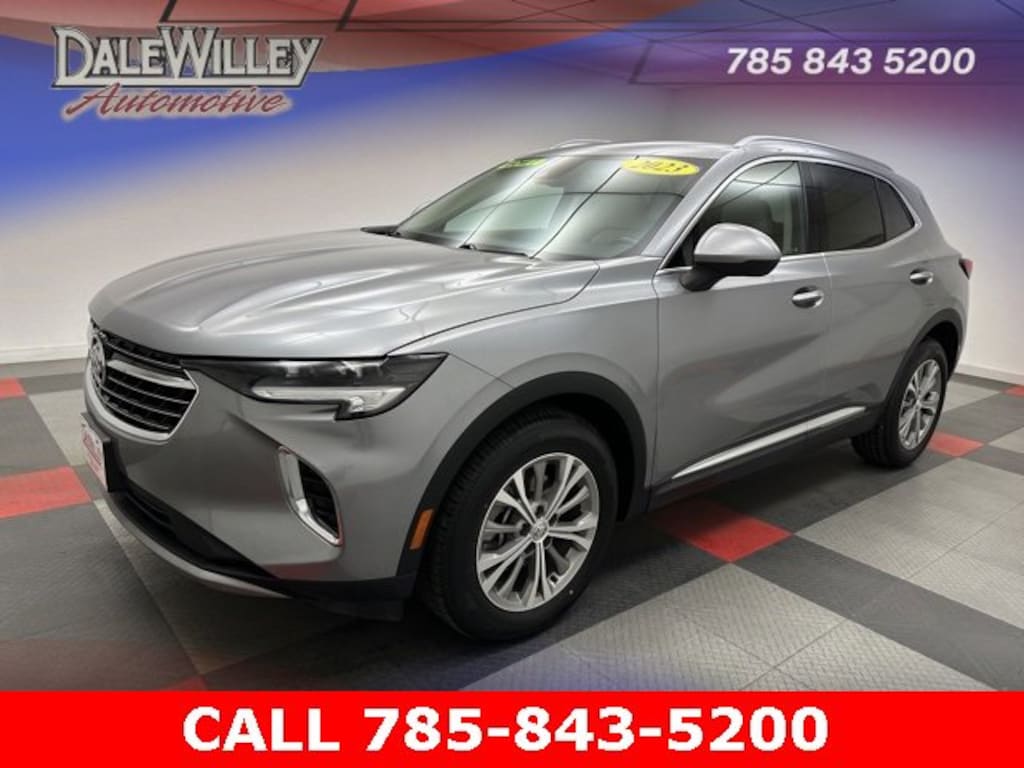 Located at Dale Willey Automotive Used Car and Truck Center / 2800 Iowa St, Lawrence, KS 66046. 2023 Buick Envision Gray Metallic Preferred FWD 9-Speed Automatic 2.0L Turbocharged CLEAN VEHICLE HISTORY...NO ACCIDENTS, Envision Preferred, 4D Sport Utility, 2.0L Turbocharged, 9-Speed Automatic, FWD, Gray Metallic, Whisper Beige Seats Premium Synthetic, 6-Speaker Audio System Feature, Alloy wheels, Apple CarPlay/Android Auto, Automatic Emergency Braking, Dual front impact airbags, Dual front side impact airbags, Electronic Stability Control, Front Bin Center Console USB Ports, Fully automatic headlights, Heated door mirrors, IntelliBeam Headlamp Control w/Auto High Beam, Knee airbag, Lane Keep Assist w/Lane Departure Warning, Occupant sensing airbag, Overhead airbag, Power driver seat, Radio: 8 Diagonal Buick Infotainment System, Remote Keyless Entry, SiriusXM Radio, Steering wheel mounted audio controls, USB Charging-Only Ports, Wireless Apple CarPlay/Wireless Android Auto.