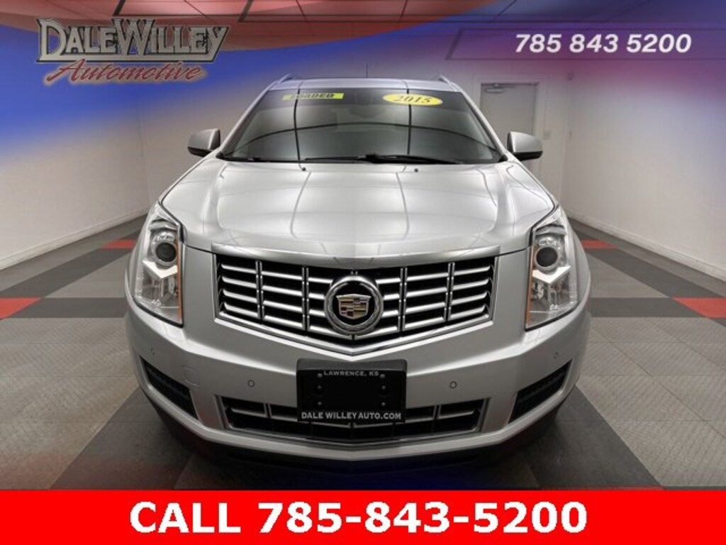 Located at Dale Willey Automotive Used Car and Truck Center / 2800 Iowa St, Lawrence, KS 66046. 2015 Cadillac SRX Radiant Silver Metallic Luxury AWD 6-Speed Automatic 3.6L V6 DGI DOHC VVT CLEAN VEHICLE HISTORY...NO ACCIDENTS, RECENT TRADE IN, NAVIGATION GPS NAV, MOONROOF SUNROOF, LEATHER, HEATED SEATS, ALL WHEEL DRIVE, SRX Luxury, 4D Sport Utility, 3.6L V6 DGI DOHC VVT, 6-Speed Automatic, AWD, Radiant Silver Metallic, Ebony W/Ebony Accents Leather, 8-Way Power Front Passenger Seat Adjuster, Adaptive Remote Start, Adjustable pedals, Alloy wheels, Automatic Air Circulation/Air Quality Sensor, Body-Colored Heated Power Outside Mirrors, Bose Centerpoint Surround Sound 10 Speaker System, Cabin Humidity Sensor, Choco Sapele Wood Trim, Choco Sapele Wood Trim On Door & Center Stack, Chrome Roof Rails, Driver & Front Passenger Heated Seats, Driver & Front Passenger Power Lumbar Control, Dual front impact airbags, Dual front side impact airbags, Electronic Stability Control, Front & Rear Park Assist, Heated front seats, Heated steering wheel, Inside Rear-View Auto-Dimming Mirror, Keyless Access, Leather Seating Surfaces, LED Spotlights w/Lighting Pipes, Memory Package, Memory seat, Navigation System, Occupant sensing airbag, Overhead airbag, Power driver seat, Power Liftgate, Power UltraView Double-Sized Sunroof, Power-Adjustable Pedals w/Memory, Preferred Equipment Group 1SB, Premium audio system: Cadillac CUE, Radio data system, Rainsense Wipers, Rear Cross-Traffic Alert, Rear Power Liftgate w/Memory Height, Rear Storage Area Cargo Management, Rear Vision Camera, Retractable Cargo Shade, Side Blind Zone Alert, SiriusXM Satellite & HD Radio, Steering wheel mounted audio controls, Universal Home Remote.
