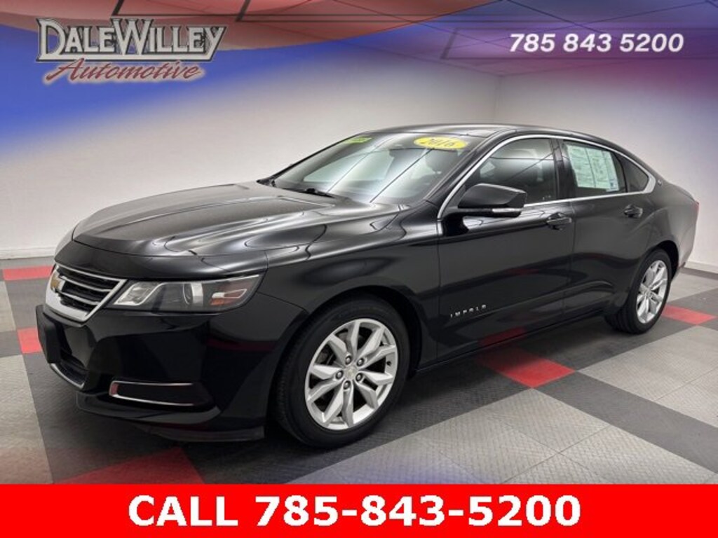 Located at Dale Willey Automotive Used Car and Truck Center / 2800 Iowa St, Lawrence, KS 66046. 2016 Chevrolet Impala Mosaic Black Metallic LT 2LT FWD 6-Speed Automatic Electronic with Overdrive 3.6L V6 DI DOHC RECENT TRADE IN, Impala LT 2LT, 4D Sedan, 3.6L V6 DI DOHC, 6-Speed Automatic Electronic with Overdrive, FWD, Mosaic Black Metallic, Jet Black Cloth, 100-Watt 6-Speaker System, 3 USB Ports, 8 Diagonal Color Infotainment Display, Alloy wheels, Auto-Dimming Inside Rear-View Mirror, Automatic temperature control, Brake assist, Carpeted Trunk Mat, Convenience Package, Dual front impact airbags, Dual front side impact airbags, Electronic Stability Control, Fully automatic headlights, Heated door mirrors, Knee airbag, Occupant sensing airbag, Overhead airbag, Power driver seat, Preferred Equipment Group 2LT, Premium Carpeted Front & Rear Floor Mats, Radio: Chevrolet MyLink AM/FM Stereo, Rear Park Assist, Rear side impact airbag, Rear Vision Camera, Remote Vehicle Starter System, SD Card Receptacle, SiriusXM Satellite Radio, Turn signal indicator mirrors, Universal Home Remote.
