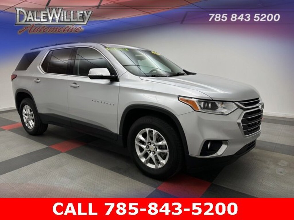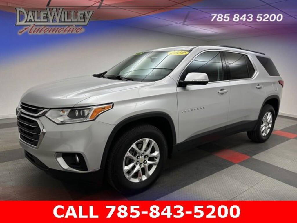 Located at Dale Willey Automotive Used Car and Truck Center / 2800 Iowa St, Lawrence, KS 66046. 2019 Chevrolet Traverse Silver Ice Metallic LT Cloth w/1LT FWD 9-Speed Automatic 3.6L V6 SIDI VVT CLEAN VEHICLE HISTORY...NO ACCIDENTS, RECENT TRADE IN, HEATED SEATS, ONE OWNER, Traverse LT Cloth w/1LT, 4D Sport Utility, 3.6L V6 SIDI VVT, 9-Speed Automatic, FWD, Silver Ice Metallic, Jet Black Cloth, 4.2 Multi-Color Enhanced Driver Instrument Display, 7-Passenger Seating (2-2-3 Seating Configuration), Alloy wheels, Apple CarPlay/Android Auto, Automatic temperature control, Convenience & Driver Confidence Package, Dual front impact airbags, Dual front side impact airbags, Electronic Stability Control, Fully automatic headlights, Heated door mirrors, Heated Driver & Front Passenger Seats, Lane Change Alert w/Side Blind Zone Alert, Occupant sensing airbag, Overhead airbag, Power driver seat, Preferred Equipment Group 1LT, Radio: Chevrolet Infotainment AM/FM w/8 Screen, Radio: Chevrolet Infotainment System AM/FM Stereo, Rear air conditioning, Rear Cross Traffic Alert, Rear Park Assist w/Audible Warning, Rear Power Liftgate, Remote Start, SiriusXM Radio, Steering wheel mounted audio controls, Turn signal indicator mirrors, Universal Home Remote.Wicked Cool! A Must See. Recent Arrival! Odometer is 14985 miles below market average! 18/27 City/Highway MPGAwards:* 2019 KBB.com 12 Best Family Cars