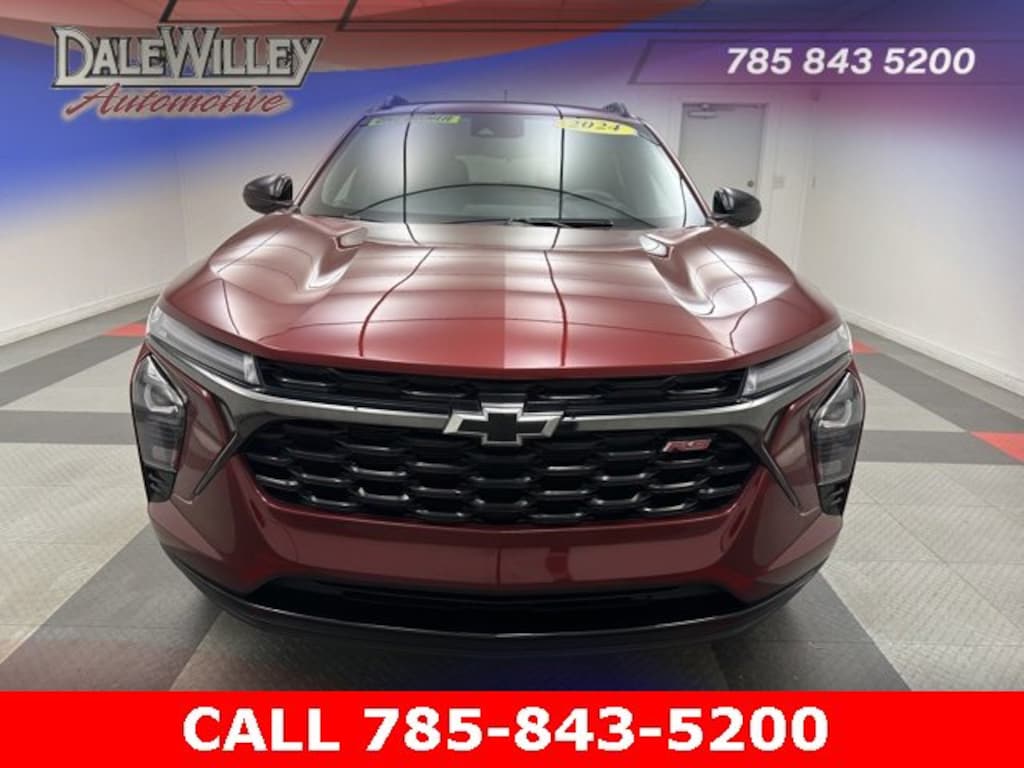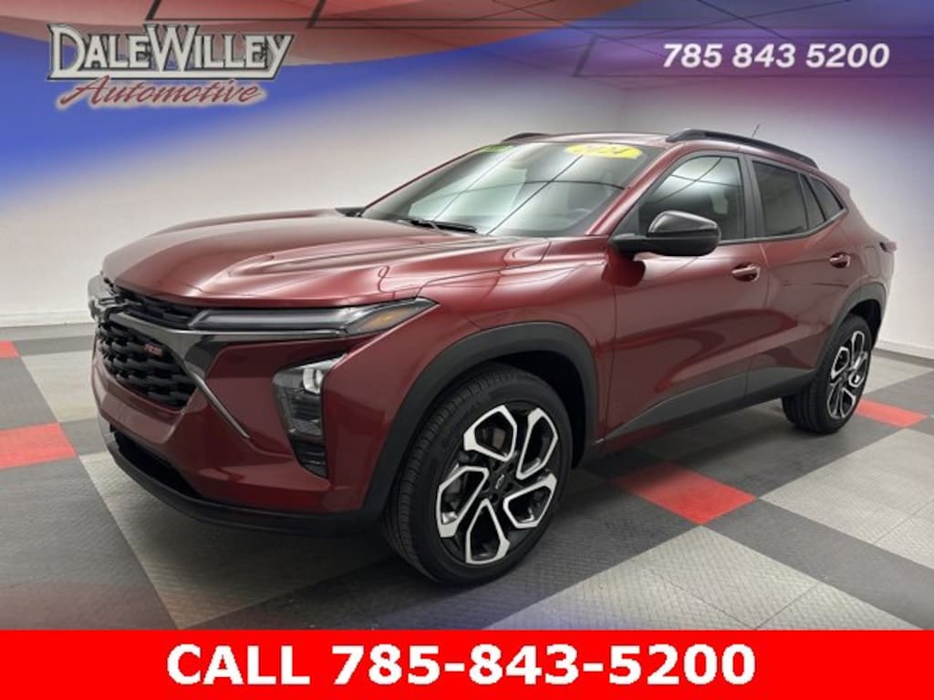 Located at Dale Willey Automotive Used Car and Truck Center / 2800 Iowa St, Lawrence, KS 66046. 2024 Chevrolet Trax Crimson Metallic 2RS FWD 6-Speed Automatic 1.2L Ecotec Turbo DOHC DI w/VVT CLEAN VEHICLE HISTORY...NO ACCIDENTS, HEATED SEATS, ONE OWNER, Trax 2RS, 4D Sport Utility, 1.2L Ecotec Turbo DOHC DI w/VVT, 6-Speed Automatic, FWD, Crimson Metallic, Jet Black With Red Accents, 6-Speaker Audio System Feature, Adaptive Cruise Control, Alloy wheels, Automatic temperature control, Driver Confidence Package, Dual front impact airbags, Dual front side impact airbags, Electronic Stability Control, Evotex Seat Trim, Fully automatic headlights, Heated door mirrors, Heated Driver & Front Passenger Seats, Heated front seats, Heated steering wheel, Lane Change Alert w/Side Blind Zone Alert, Occupant sensing airbag, Overhead airbag, Preferred Equipment Group 2RS, Radio: Audio System w/AM/FM, Rear Cross-Traffic Alert, Rear Park Assist, Remote Keyless Entry, SiriusXM, Steering wheel mounted audio controls.