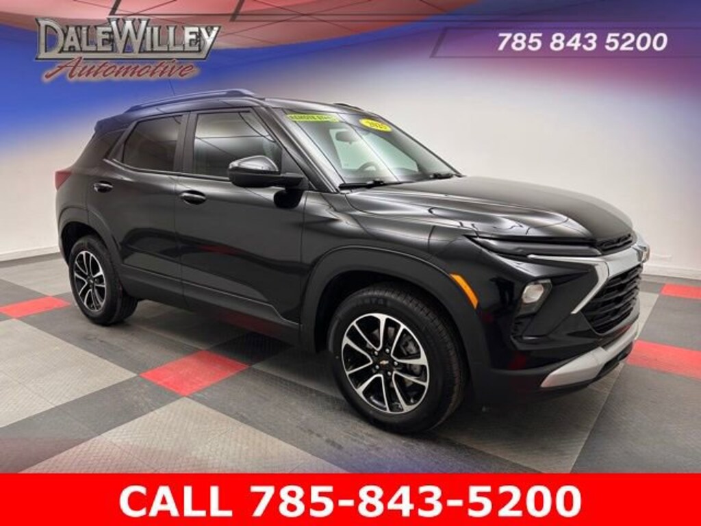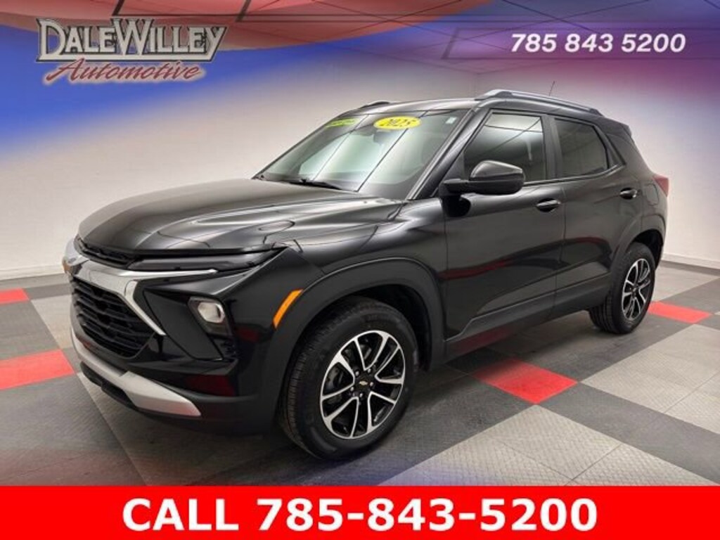 Located at Dale Willey Automotive Used Car and Truck Center / 2800 Iowa St, Lawrence, KS 66046. 2025 Chevrolet TrailBlazer Black Metallic LT AWD 9-Speed Automatic 1.3L I3 Turbocharged DOHC 12V LEV3-SULEV30 155hp ALL WHEEL DRIVE, TrailBlazer LT, 4D Sport Utility, 1.3L I3 Turbocharged DOHC 12V LEV3-SULEV30 155hp, 9-Speed Automatic, AWD, Black Metallic, Jet Black w/Cloth Seat Trim, 1 Type-A and 1 Type-C USB Ports, 6-Speaker Audio System Feature with Amplifier, Alloy wheels, Dual front impact airbags, Dual front side impact airbags, Electronic Stability Control, Fully automatic headlights, Heated door mirrors, Knee airbag, Occupant sensing airbag, Overhead airbag, Preferred Equipment Group 1LT, Radio: AM/FM Stereo Audio System, Rear side impact airbag, Remote Keyless Entry, SiriusXM Trial Subscription, Steering wheel mounted audio controls, Wireless Apple CarPlay/Android Auto.