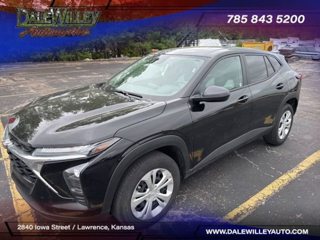 Located at Dale Willey Automotive Used Car and Truck Center / 2800 Iowa St, Lawrence, KS 66046. 2025 Chevrolet Trax Black Metallic LS FWD 6-Speed Automatic 1.2L I3 DI Turbocharged DOHC 12V LEV3-ULEV70 137hp CLEAN VEHICLE HISTORY...NO ACCIDENTS, Trax LS, 4D Sport Utility, 1.2L I3 DI Turbocharged DOHC 12V LEV3-ULEV70 137hp, 6-Speed Automatic, FWD, Black Metallic, Jet Black/Gray With Blue Accents Cloth, 4-Speaker Audio System Feature, Dual front impact airbags, Dual front side impact airbags, Electronic Stability Control, Exterior Parking Camera Rear, Fully automatic headlights, License Plate Front Mounting Package, Occupant sensing airbag, Overhead airbag, Preferred Equipment Group 1LS, Premium audio system: Chevrolet Infotainment 3, Radio: Chevrolet Infotainment 3 System with AM/FM, Remote Keyless Entry, SiriusXM Trial Subscription, Steering wheel mounted audio controls.