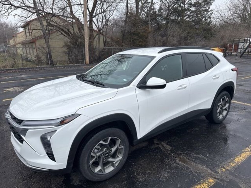 Located at Dale Willey Automotive Used Car and Truck Center / 2800 Iowa St, Lawrence, KS 66046. 2025 Chevrolet Trax Summit White LT FWD 6-Speed Automatic 1.2L I3 DI Turbocharged DOHC 12V LEV3-ULEV70 137hp CLEAN VEHICLE HISTORY...NO ACCIDENTS, Trax LT, 4D Sport Utility, 1.2L I3 DI Turbocharged DOHC 12V LEV3-ULEV70 137hp, 6-Speed Automatic, FWD, Summit White, Jet Black With Blue Accents Cloth, 6-Speaker Audio System Feature, Alloy wheels, Automatic temperature control, Dual front impact airbags, Dual front side impact airbags, Electronic Stability Control, Exterior Parking Camera Rear, Fully automatic headlights, Occupant sensing airbag, Overhead airbag, Preferred Equipment Group 1LT, Radio: AM/FM Stereo Audio System, Remote Keyless Entry, SiriusXM Trial Subscription, Steering wheel mounted audio controls.