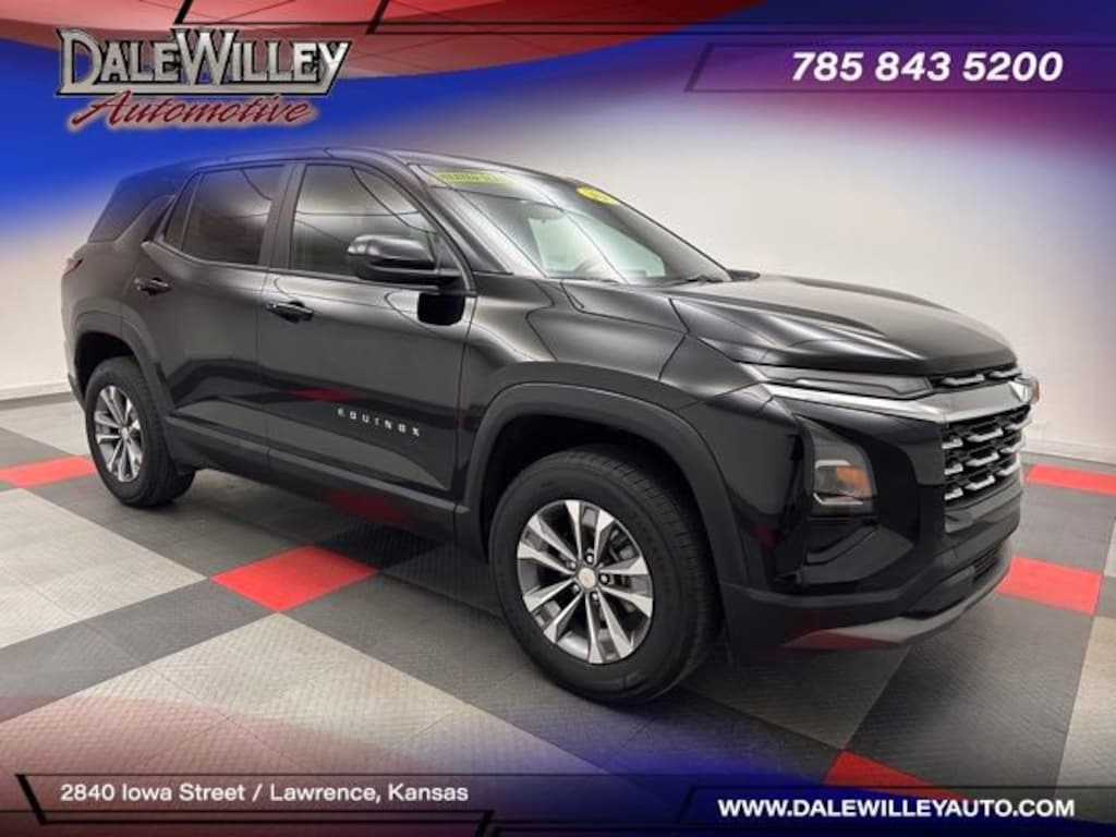 Located at Dale Willey Automotive Used Car and Truck Center / 2800 Iowa St, Lawrence, KS 66046. 2026 Chevrolet Equinox Black Metallic LT FWD CVT 1.5L DOHC CLEAN VEHICLE HISTORY...NO ACCIDENTS, NAVIGATION GPS NAV, HEATED SEATS, Equinox LT, 4D Sport Utility, 1.5L DOHC, CVT, FWD, Black Metallic, Black Cloth, Alloy wheels, Electronic Stability Control, Fully automatic headlights, Heated Driver and Front Passenger Seats, Heated front seats, Heated steering wheel, Navigation System, Preferred Equipment Group 1LT, Premium audio system: Chevrolet Infotainment 3, Radio: 11.3 Diagonal Advanced Color LCD Display, Remote Keyless Entry, SiriusXM with 360L Trial Subscription, Steering wheel mounted audio controls.