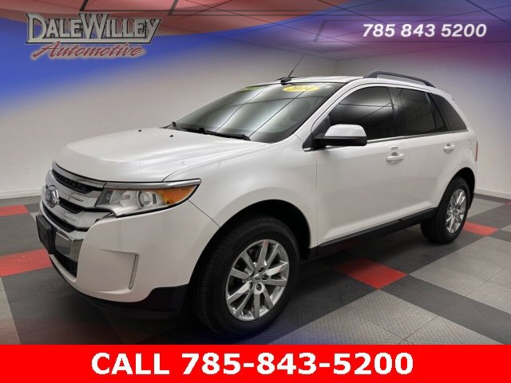 Located at Dale Willey Automotive Used Car and Truck Center / 2800 Iowa St, Lawrence, KS 66046. 2014 Ford Edge White Platinum Clearcoat Metallic Limited AWD 6-Speed Automatic with Select-Shift 3.5L V6 Ti-VCT RECENT TRADE IN, LEATHER, HEATED SEATS, ALL WHEEL DRIVE, Edge Limited, 4D Sport Utility, 3.5L V6 Ti-VCT, 6-Speed Automatic with Select-Shift, AWD, White Platinum Clearcoat Metallic, Black Leather, Automatic temperature control, Dual front impact airbags, Dual front side impact airbags, Electronic Stability Control, Equipment Group 300A, Exterior Parking Camera Rear, Fully automatic headlights, Heated door mirrors, Heated front seats, Leather-Trimmed Heated Bucket Seats, Memory seat, Occupant sensing airbag, Overhead airbag, Power driver seat, Power passenger seat, Premium audio system: Sony, Radio: Sony AM/FM Stereo w/HD Radio/MyFord Touch, Remote Keyless Entry, Steering wheel mounted audio controls, SYNC w/MyFord Touch & SYNC Services.