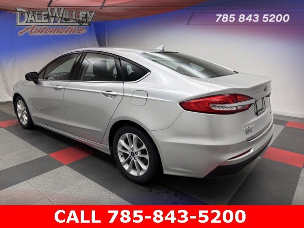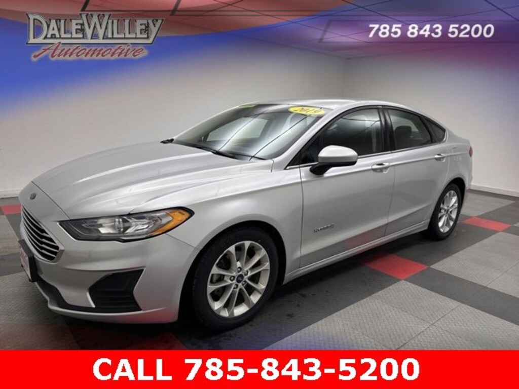 Located at Dale Willey Automotive Used Car and Truck Center / 2800 Iowa St, Lawrence, KS 66046. 2019 Ford Fusion Hybrid Ingot Silver SE FWD eCVT I4 Hybrid RECENT TRADE IN, Fusion Hybrid SE, 4D Sedan, I4 Hybrid, eCVT, FWD, Ingot Silver, Ebony Cloth, Alloy wheels, AppLink/Apple CarPlay and Android Auto, Automatic temperature control, Brake assist, Dual front impact airbags, Dual front side impact airbags, Electronic Stability Control, Equipment Group 550A, Exterior Parking Camera Rear, Fully automatic headlights, Knee airbag, Lane Departure Warning System, Navigation System, Occupant sensing airbag, Overhead airbag, Power driver seat, Power passenger seat, Radio: AM/FM/MP3 Stereo, Rain sensing wipers, Rear Parking Sensors, Remote Keyless Entry, Steering wheel mounted audio controls, SYNC 3 Communications & Entertainment System.Wicked Cool! A Must See. Recent Arrival! 43/41 City/Highway MPG