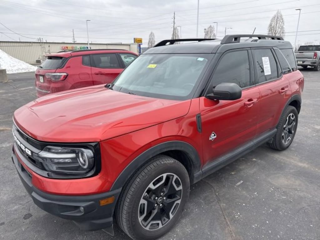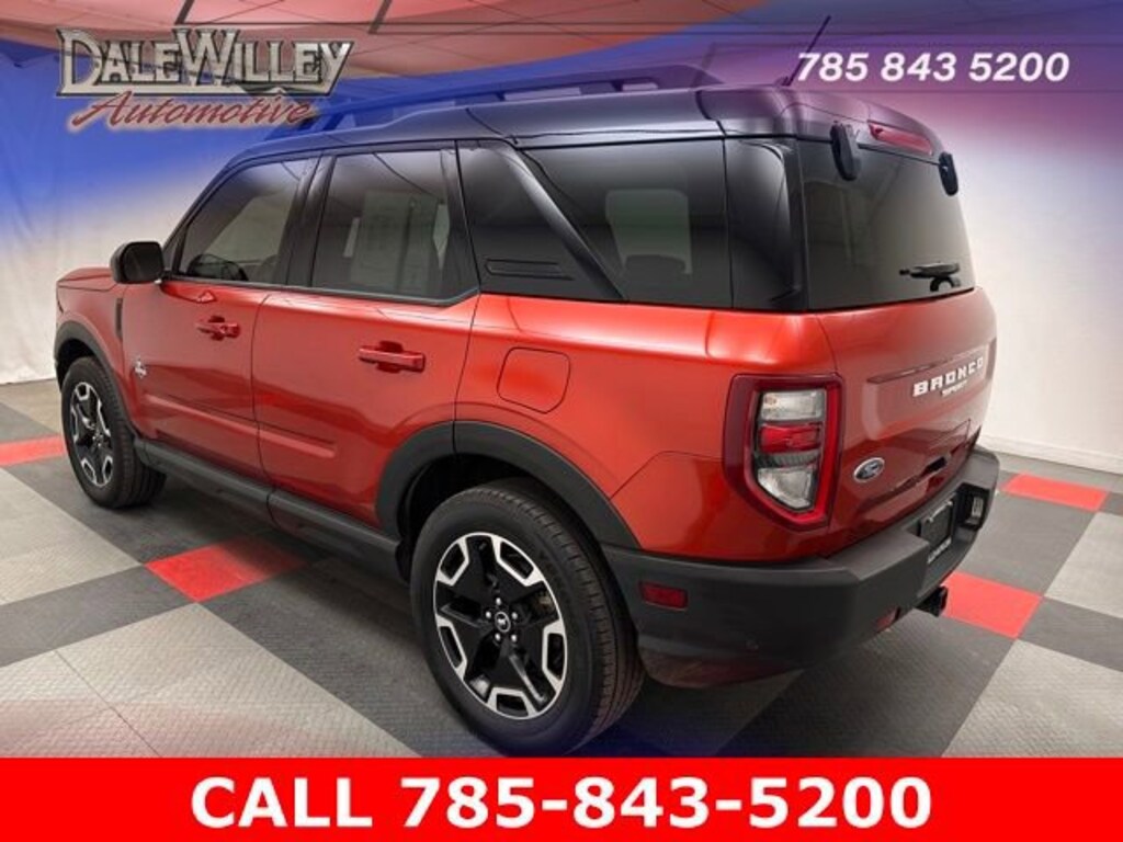 Located at Dale Willey Automotive Used Car and Truck Center / 2800 Iowa St, Lawrence, KS 66046. 2023 Ford Bronco Sport Chili Pepper Red Outer Banks 4WD 8-Speed Automatic 1.5L EcoBoost CLEAN VEHICLE HISTORY...NO ACCIDENTS, LEATHER, HEATED SEATS, FOUR WHEEL DRIVE 4WD, TOW PACKAGE, Bronco Sport Outer Banks, 4D Sport Utility, 1.5L EcoBoost, 8-Speed Automatic, 4WD, Chili Pepper Red, Ebony/Roast Leather, Alloy wheels, Class II Trailer Tow Package w/Trailer Sway Control, Dual front impact airbags, Dual front side impact airbags, Electronic Stability Control, Equipment Group 300A, Evasive Steering Assist, Ford Co-Pilot360 Assist+, Fully automatic headlights, HD Radio, Heated front seats, Heated steering wheel, Intelligent Adaptive Cruise Control w/Stop & Go, Knee airbag, Memory seat, Occupant sensing airbag, Overhead airbag, Power driver seat, Power passenger seat, Rain sensing wipers, Rear Parking Sensors, Remote Keyless Entry, Steering wheel mounted audio controls, SYNC 3 Communications & Entertainment System, Tech Package, Universal Garage Door Opener (UGDO), Voice-Activated Touchscreen Navigation System, Wireless Charging Pad.