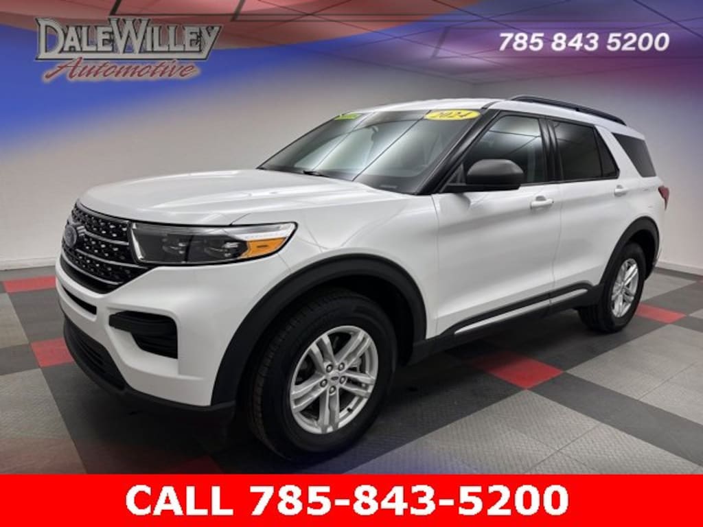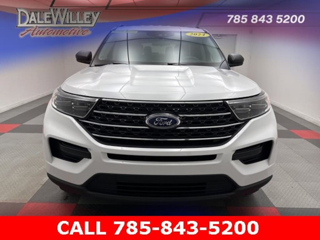 Located at Dale Willey Automotive Used Car and Truck Center / 2800 Iowa St, Lawrence, KS 66046. 2024 Ford Explorer Oxford White XLT 4WD 10-Speed Automatic 2.3L EcoBoost I-4 CLEAN VEHICLE HISTORY...NO ACCIDENTS, FOUR WHEEL DRIVE 4WD, Explorer XLT, 4D Sport Utility, 2.3L EcoBoost I-4, 10-Speed Automatic, 4WD, Oxford White, Ebony w/Heated Unique Cloth Captain's Chairs, Alloy wheels, AM/FM Stereo, Automatic temperature control, Dual front impact airbags, Dual front side impact airbags, Electronic Stability Control, Equipment Group 200A, Exterior Parking Camera Rear, FordPass Connect, Fully automatic headlights, Heated door mirrors, Heated front seats, Heated Unique Cloth Captain's Chairs, Knee airbag, Occupant sensing airbag, Overhead airbag, Power driver seat, Power Liftgate, Rear air conditioning, Remote Keyless Entry, Steering wheel mounted audio controls, SYNC 3 Communications & Entertainment System.