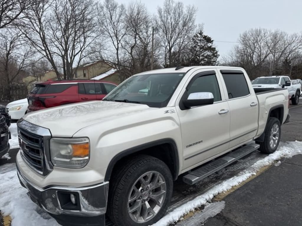 Located at Dale Willey Automotive Used Car and Truck Center / 2800 Iowa St, Lawrence, KS 66046. 2015 GMC Sierra 1500 White Diamond Tricoat SLT 4WD 6-Speed Automatic Electronic with Overdrive EcoTec3 5.3L V8 CLEAN VEHICLE HISTORY...NO ACCIDENTS, RECENT TRADE IN, LEATHER, HEATED SEATS, FOUR WHEEL DRIVE 4WD, Sierra 1500 SLT, 4D Crew Cab, EcoTec3 5.3L V8, 6-Speed Automatic Electronic with Overdrive, 4WD, White Diamond Tricoat, Cocoa/Dune Leather, 110-Volt AC Power Outlet, 150 Amp Alternator, 20 x 9 Polished Aluminum Wheels, 4.2 Diagonal Color Display Driver Info Center, 6 Rectangular Chromed Tubular Assist Steps, Adjustable pedals, Auto-Dimming Inside Rear-View Mirror, Auxiliary External Transmission Oil Cooler, Bose Speaker System, Chrome Bodyside Moldings, Chrome Door Handles, Chrome Grille Surround, Chrome Mirror Caps, Color-Keyed Carpeting w/Rubberized Vinyl Floor Mats, Deep-Tinted Glass, Driver & Front Passenger Illuminated Vanity Mirrors, Driver Alert Package, Dual front impact airbags, Dual front side impact airbags, Dual-Zone Automatic Climate Control, Electric Rear-Window Defogger, Electronic Autotrac Transfer Case, Electronic Stability Control, EZ Lift & Lower Tailgate, Front Frame-Mounted Black Recovery Hooks, Front Halogen Fog Lamps, Heated & Cooled Front Bucket Seats, Heated Driver & Front Passenger Seats, Heated front seats, Heavy-Duty Rear Locking Differential, Hill Descent Control, Leather Appointed Seat Trim, Leather Wrapped Heated Steering Wheel, Leather Wrapped Steering Wheel w/Cruise Controls, LED Cargo Box Lighting, Manual Tilt Wheel Steering Column, Occupant sensing airbag, Off-Road Suspension Package, OnStar 6 Months Directions & Connections Plan, OnStar w/4G LTE, Overhead airbag, Power Adjustable Pedals, Power Folding & Adjustable Heated Outside Mirrors, Power passenger seat, Power Sliding Rear Window, Power Windows w/Driver Express Up & Down, Preferred Equipment Group 4SA, Radio: AM/FM Stereo w/8 Diagonal Color Touch Nav., Rear 60/40 Folding Bench Seat (Folds Up), Rear Vision Camera w/Dynamic Guide Lines, Rear Wheelhouse Liners, Remote Keyless Entry, Remote Vehicle Starter System, Single Slot CD/MP3 Player, SiriusXM Satellite Radio, SLT Crew Cab Value Package, SLT Preferred Package, Steering Wheel Audio Controls, Theft Deterrent System (Unauthorized Entry), Trailering Equipment, Ultrasonic Front & Rear Park Assist, Universal Home Remote.