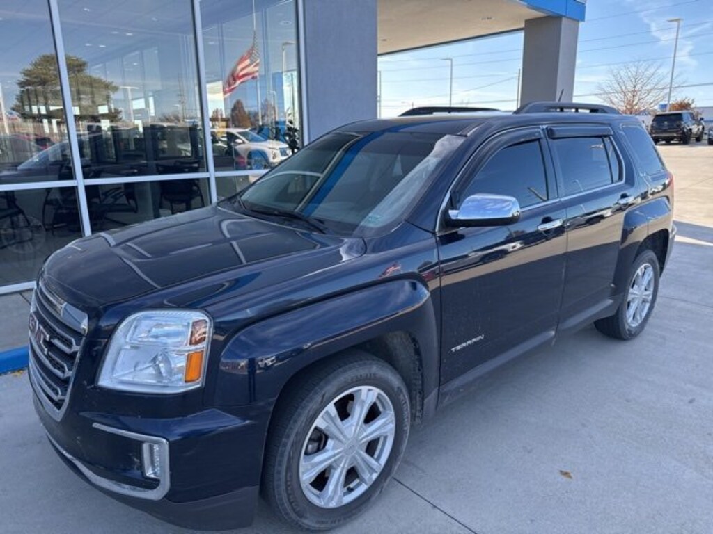 Located at Dale Willey Automotive Used Car and Truck Center / 2800 Iowa St, Lawrence, KS 66046. 2017 GMC Terrain Dark Sapphire Blue Metallic SLE-2 FWD 6-Speed Automatic 3.6L V6 DGI DOHC VVT RECENT TRADE IN, HEATED SEATS, Terrain SLE-2, 4D Sport Utility, 3.6L V6 DGI DOHC VVT, 6-Speed Automatic, FWD, Dark Sapphire Blue Metallic, Jet Black Cloth, Alloy wheels, Bluetooth® For Phone, Chrome Accented Grille (LPO), Chrome Door Handles, Chrome Edition, Chrome Power-Adjustable Heated Outside Mirrors, Convenience Package, Dual front impact airbags, Dual front side impact airbags, Electronic Stability Control, Exterior Parking Camera Rear, Fully automatic headlights, Heated Driver & Front Passenger Seats, IntelliLink, Leather-Wrapped Steering Wheel, Occupant sensing airbag, Overhead airbag, Pioneer Premium 8-Speaker System, Preferred Equipment Group 3SB, Radio: Color Touch AM/FM Stereo, Remote Keyless Entry, Remote Vehicle Start, Single-Zone Automatic Climate Control, SiriusXM Satellite Radio, Steering wheel mounted audio controls.