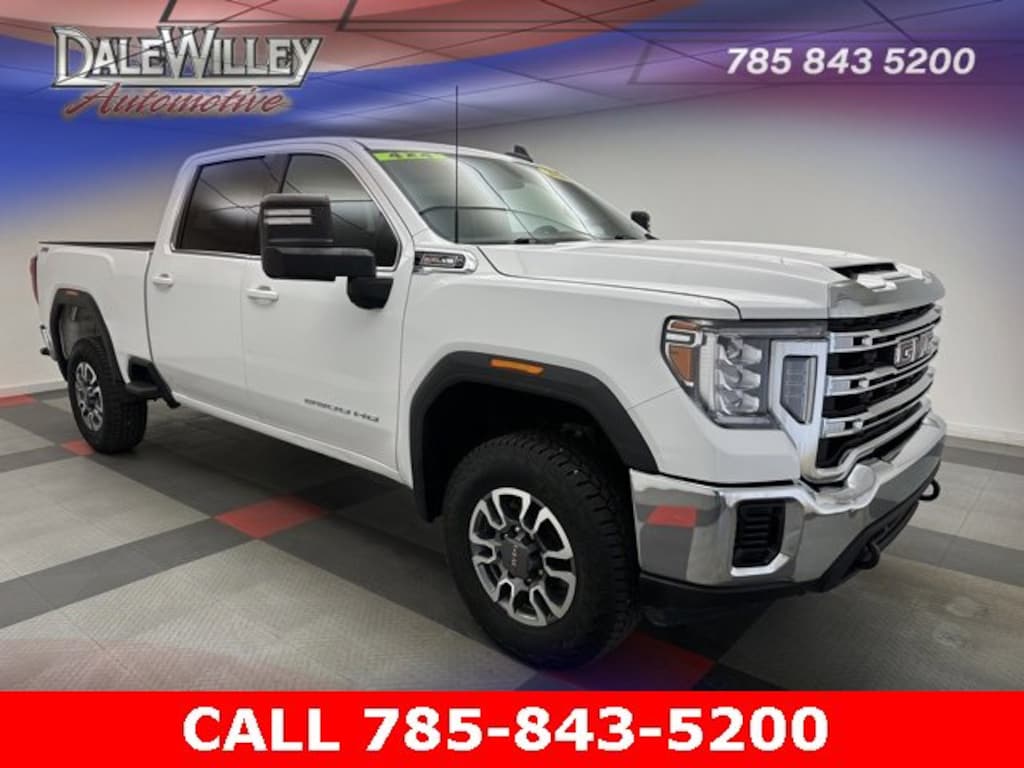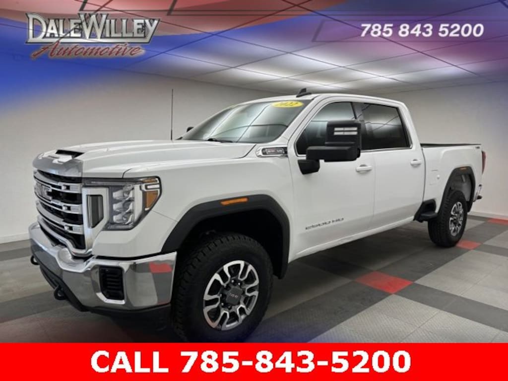 Located at Dale Willey Automotive Used Car and Truck Center / 2800 Iowa St, Lawrence, KS 66046. 2022 GMC Sierra 2500HD Summit White SLE 4WD 6-Speed Automatic 6.6L V8 CLEAN VEHICLE HISTORY...NO ACCIDENTS, RECENT TRADE IN, FOUR WHEEL DRIVE 4WD, ONE OWNER, Sierra 2500HD SLE, 4D Crew Cab, 6.6L V8, 6-Speed Automatic, 4WD, Summit White, Black Cloth, 2 USB Ports, 2-Speed Electronic Shift Transfer Case, Apple CarPlay/Android Auto, Chrome Surround Grille w/High Gloss Black Mesh, Compass Located In Instrument Cluster, Deep-Tinted Glass, Dual front impact airbags, Dual front side impact airbags, Electric Rear-Window Defogger, Electronic Stability Control, Fully automatic headlights, GMC Connected Access Capable, HD Rear Vision Camera, Hill Descent Control, Hitch Guidance w/Hitch View, In-Vehicle Trailering System App, Integrated Trailer Brake Controller, Manual Tilt Wheel Steering Column, Occupant sensing airbag, Off-Road Suspension, OnStar & GMC Connected Services Capable, Overhead airbag, Power Door Locks, Power Front Windows w/Passenger Express Down, Power Rear Windows w/Express Down, Power Windows w/Driver Express Up/Down, Preferred Equipment Group 3SA, ProGrade Trailering System, Radio: AM/FM w/Premium GMC Infotainment System, Remote Keyless Entry, Remote Start Package, Remote Vehicle Starter System, SiriusXM Radio, SiriusXM w/360L, Steering Wheel Audio Controls, Suspension Package, Turn signal indicator mirrors, Wi-Fi Hotspot Capable, Wireless Phone Projection, X31 Off-Road Package.