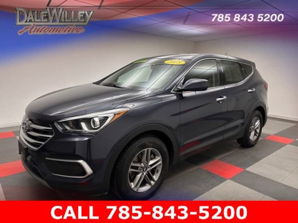 Located at Dale Willey Automotive Used Car and Truck Center / 2800 Iowa St, Lawrence, KS 66046. 2018 Hyundai Santa Fe Sport Marlin Blue 2.4 Base FWD 6-Speed Automatic with Shiftronic 2.4L I4 DGI DOHC 16V RECENT TRADE IN, Santa Fe Sport 2.4 Base, 4D Sport Utility, 2.4L I4 DGI DOHC 16V, 6-Speed Automatic with Shiftronic, FWD, Marlin Blue, Beige Cloth, Alloy wheels, AM/FM/CD/MP3 Audio System, Dual front impact airbags, Dual front side impact airbags, Electronic Stability Control, Exterior Parking Camera Rear, Fully automatic headlights, Knee airbag, Multi-Adjustable Bucket Seats, Occupant sensing airbag, Option Group 01, Overhead airbag, Remote Keyless Entry, Steering wheel mounted audio controls.