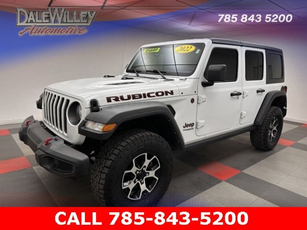 Located at Dale Willey Automotive Used Car and Truck Center / 2800 Iowa St, Lawrence, KS 66046. 2022 Jeep Wrangler Bright White Clearcoat Unlimited Rubicon 4WD 8-Speed Automatic 2.0L I4 DOHC CLEAN VEHICLE HISTORY...NO ACCIDENTS, RECENT TRADE IN, NAVIGATION GPS NAV, FOUR WHEEL DRIVE 4WD, Wrangler Unlimited Rubicon, 4D Sport Utility, 2.0L I4 DOHC, 8-Speed Automatic, 4WD, Bright White Clearcoat, Black Cloth, 240 Amp Alternator, 7 & 4 Pin Wiring Harness, 700 Amp Maintenance Free Battery, Automatic temperature control, Auxiliary Switches, Class II Receiver Hitch, Dual front impact airbags, Dual front side impact airbags, Fully automatic headlights, Heated door mirrors, Integrated roll-over protection, Navigation System, Occupant sensing airbag, ParkView Rear Back-Up Camera, Quick Order Package 22R, Radio: Uconnect 4C Nav w/8.4 Display, Remote Keyless Entry, Remote Start System, Steering wheel mounted audio controls, Trailer Tow & HD Electrical Group.