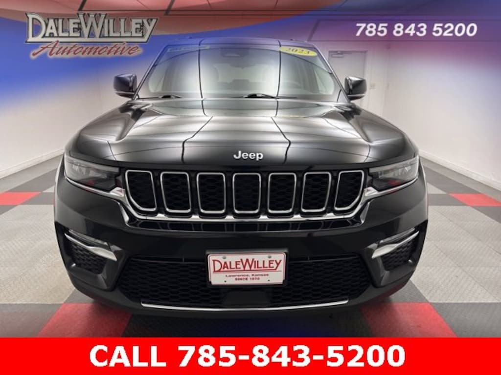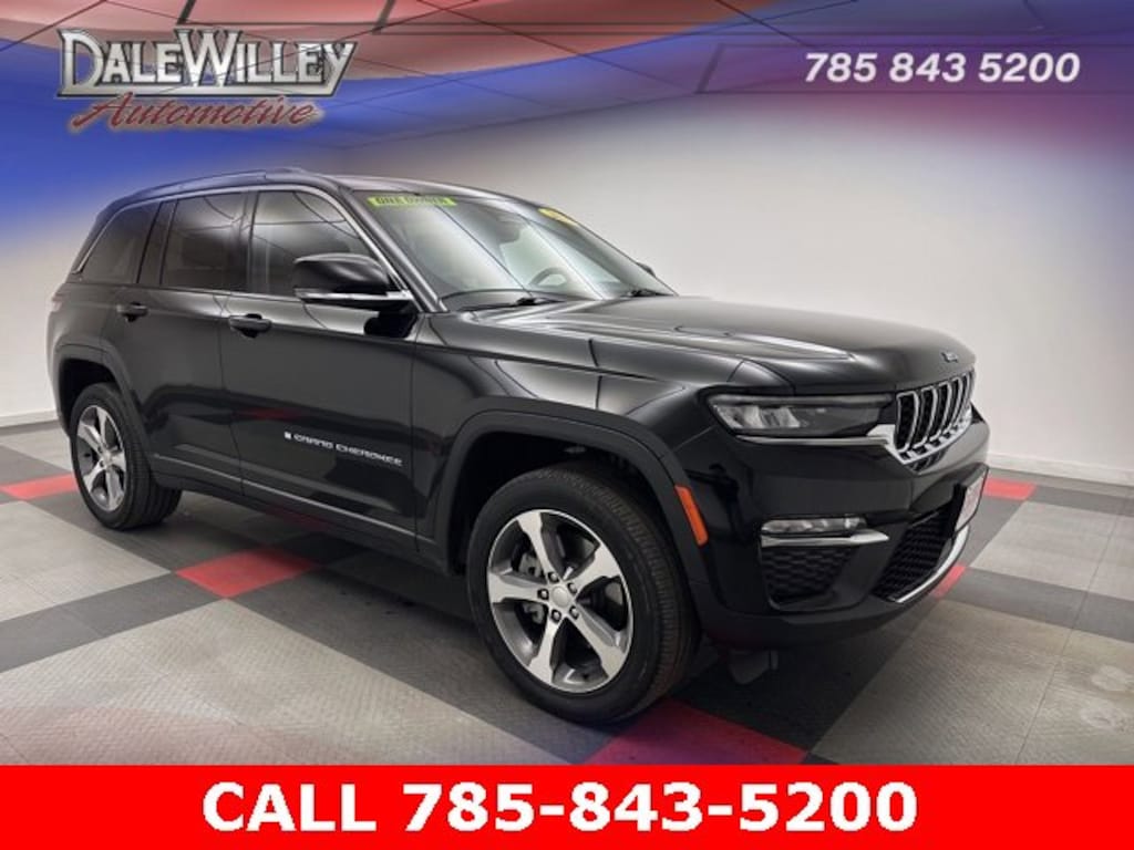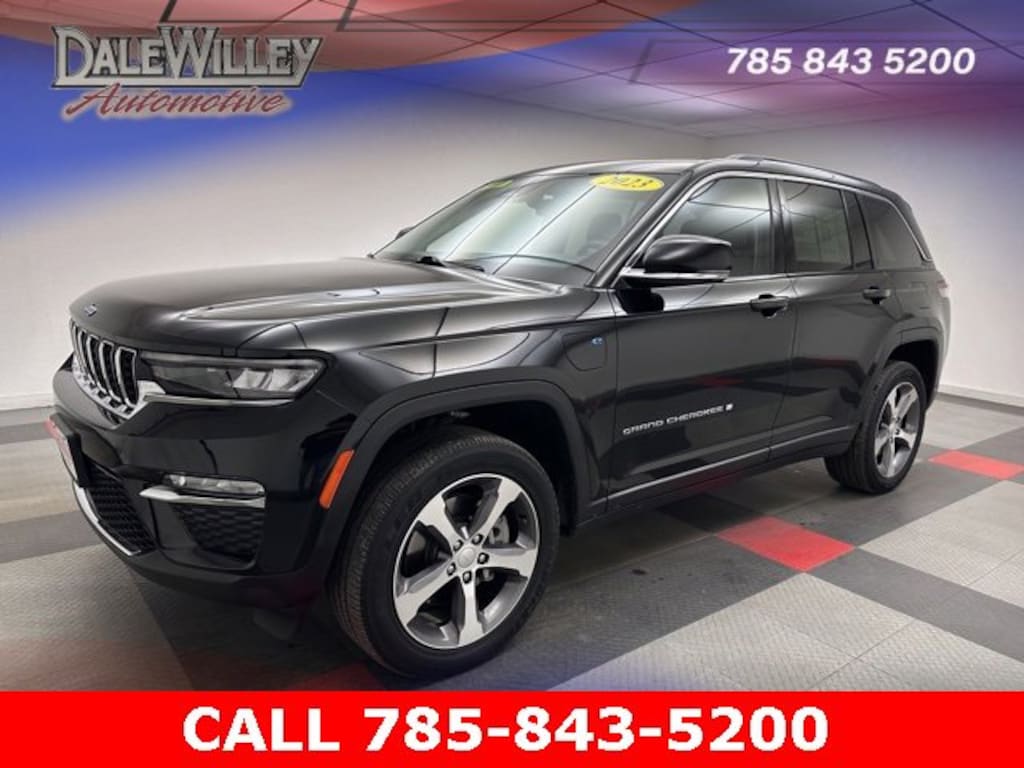 Located at Dale Willey Automotive Used Car and Truck Center / 2800 Iowa St, Lawrence, KS 66046. 2023 Jeep Grand Cherokee Diamond Black Crystal Pearlcoat 4xe 4WD 8-Speed Automatic 2.0L I4 DOHC CLEAN VEHICLE HISTORY...NO ACCIDENTS, NAVIGATION GPS NAV, HEATED SEATS, FOUR WHEEL DRIVE 4WD, ONE OWNER, Grand Cherokee 4xe Base, 4D Sport Utility, 2.0L I4 DOHC, 8-Speed Automatic, 4WD, Diamond Black Crystal Pearlcoat, Global Black Artificial Leather, Alloy wheels, Anti-whiplash front head restraints, Automatic temperature control, Dual front impact airbags, Dual front side impact airbags, Electronic Stability Control, Fully automatic headlights, Garage door transmitter, Heated front seats, Heated rear seats, Heated steering wheel, Knee airbag, Memory seat, Navigation System, Occupant sensing airbag, ParkView Rear Back-Up Camera, Power driver seat, Power Liftgate, Power moonroof, Power passenger seat, Quick Order Package 27F, Radio data system, Radio: Uconnect 5 Nav w/10.1 Display, Rear anti-roll bar, Remote Keyless Entry, Speed-Sensitive Wipers, Steering wheel mounted audio controls, Turn signal indicator mirrors.