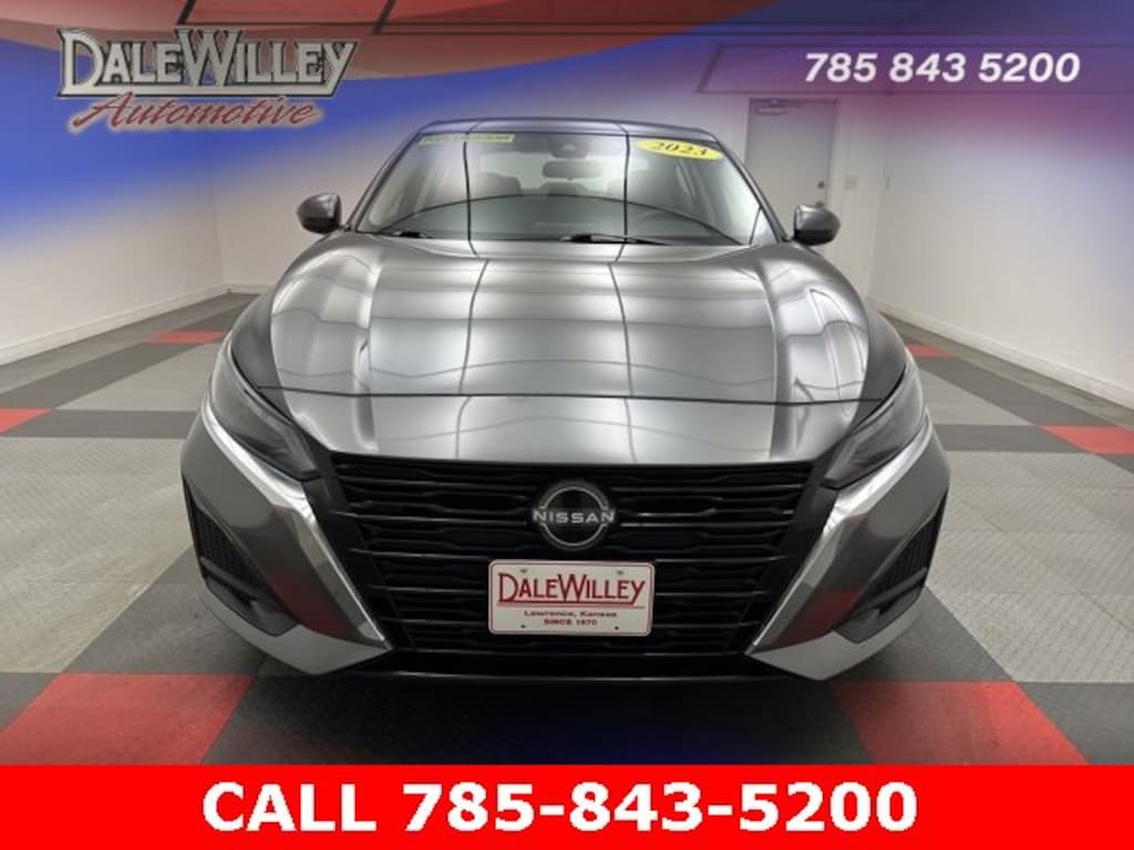 Located at Dale Willey Automotive Used Car and Truck Center / 2800 Iowa St, Lawrence, KS 66046. 2023 Nissan Altima Gun Metallic 2.5 SV FWD CVT with Xtronic 2.5L 4-Cylinder DOHC 16V CLEAN VEHICLE HISTORY...NO ACCIDENTS, Altima 2.5 SV, 4D Sedan, 2.5L 4-Cylinder DOHC 16V, CVT with Xtronic, FWD, Gun Metallic, Charcoal Cloth, Alloy wheels, Blind Spot Warning, Dual front impact airbags, Dual front side impact airbags, Electronic Stability Control, Fully automatic headlights, Knee airbag, NissanConnect featuring Apple CarPlay and Android Auto, Occupant sensing airbag, Overhead airbag, Power driver seat, Radio data system, Radio: AM/FM Audio System, Rear Parking Sensors, Rear side impact airbag, Remote Keyless Entry, Steering wheel mounted audio controls.