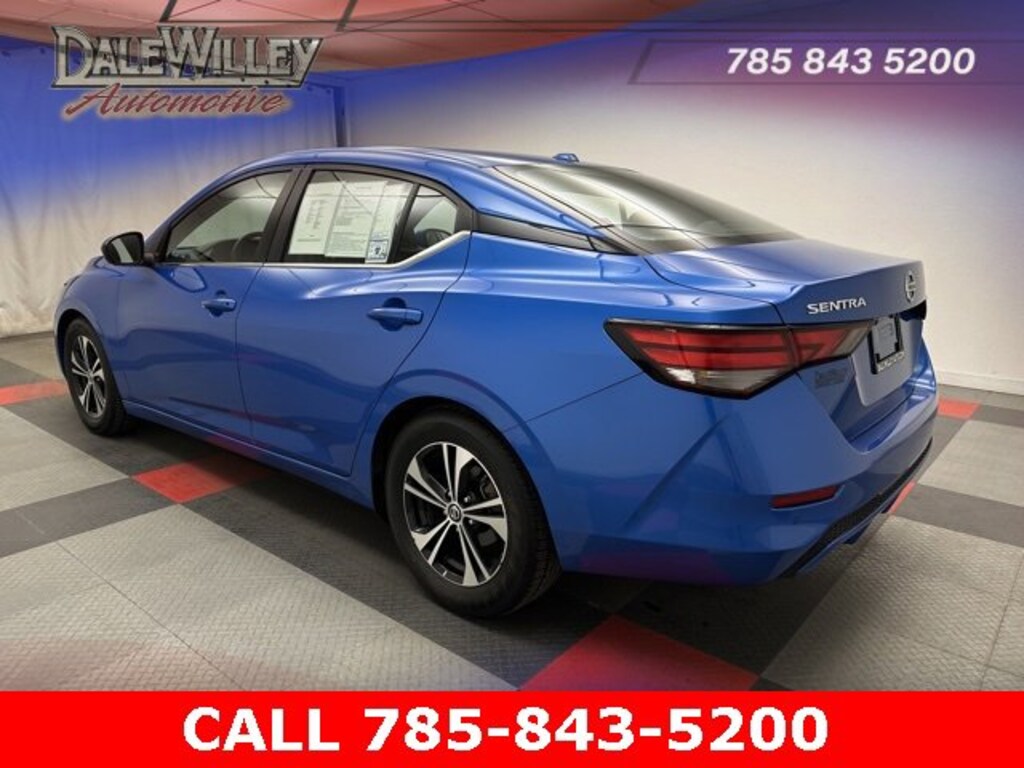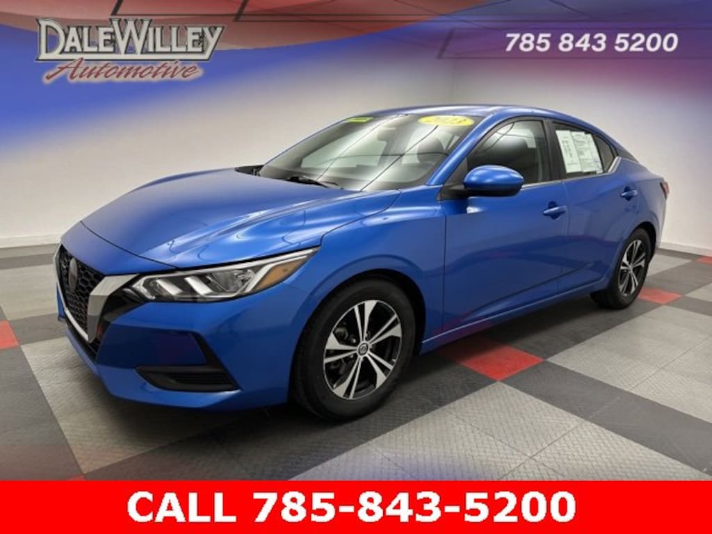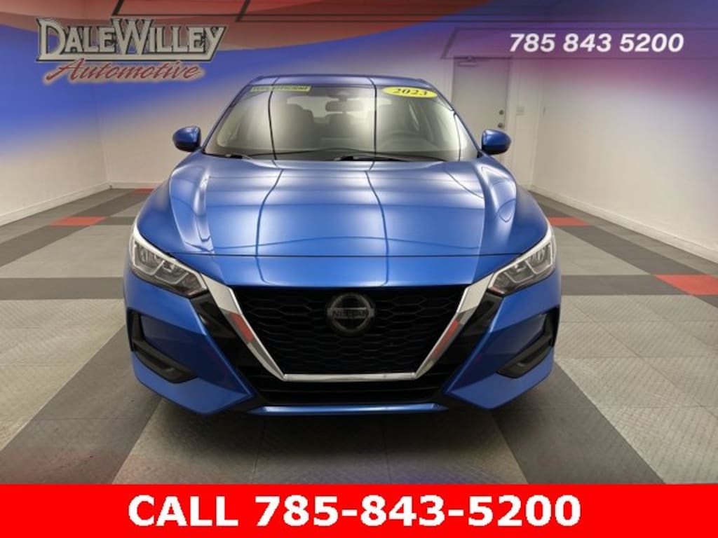 Located at Dale Willey Automotive Used Car and Truck Center / 2800 Iowa St, Lawrence, KS 66046. 2023 Nissan Sentra Electric Blue Metallic SV FWD CVT with Xtronic 2.0L DOHC CLEAN VEHICLE HISTORY...NO ACCIDENTS, Sentra SV, 4D Sedan, 2.0L DOHC, CVT with Xtronic, FWD, Electric Blue Metallic, Charcoal Cloth, Alloy wheels, Blind Spot Warning, Brake assist, Dual front impact airbags, Dual front side impact airbags, Electronic Stability Control, Fully automatic headlights, Heated door mirrors, Illuminated entry, Knee airbag, NissanConnect featuring Apple CarPlay and Android Auto, Occupant sensing airbag, Overhead airbag, Radio data system, Radio: AM/FM w/RDS/MP3/Aux-In, Rear Parking Sensors, Rear side impact airbag, Remote Keyless Entry, Steering wheel mounted audio controls.