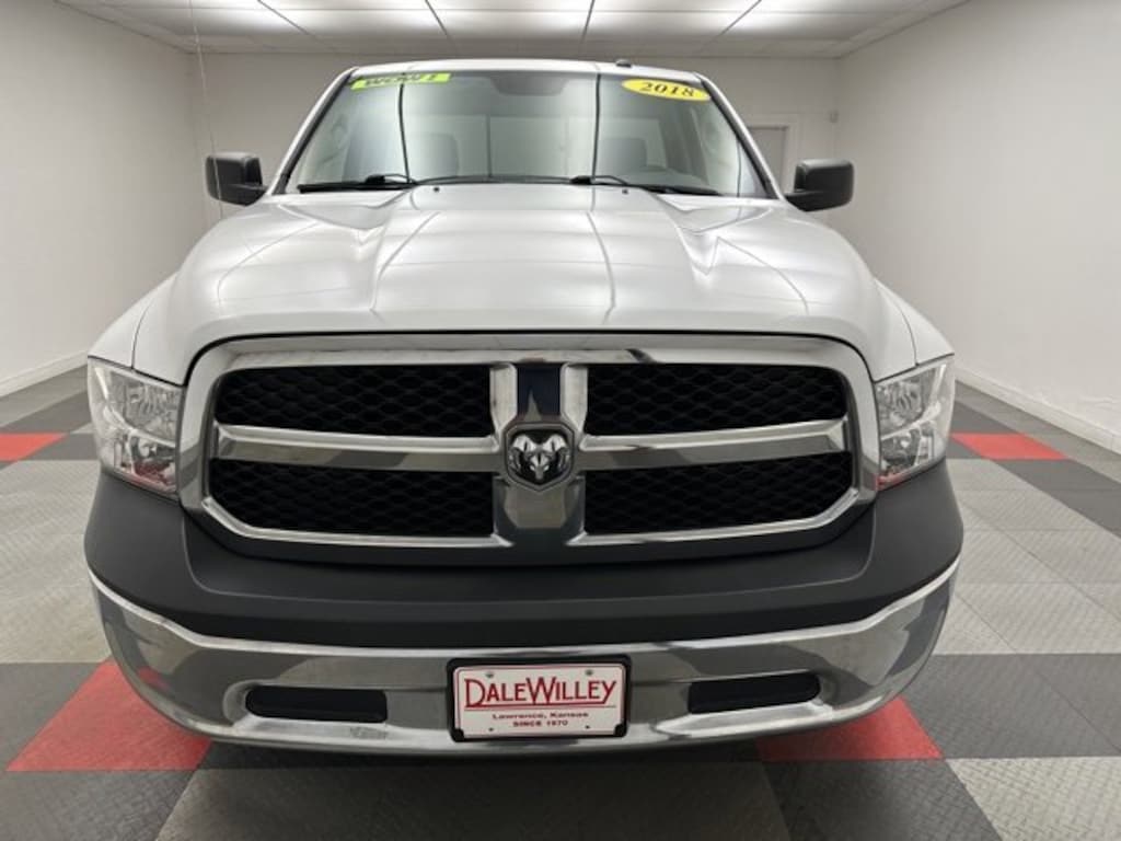 Located at Dale Willey Automotive Used Car and Truck Center / 2800 Iowa St, Lawrence, KS 66046. 2018 Ram 1500 Bright White Clearcoat Tradesman RWD 8-Speed Automatic HEMI 5.7L V8 Multi Displacement VVT CLEAN VEHICLE HISTORY...NO ACCIDENTS, 1500 Tradesman, 2D Standard Cab, HEMI 5.7L V8 Multi Displacement VVT, 8-Speed Automatic, RWD, Bright White Clearcoat, Black Cloth, 1-Year SiriusXM Radio Service, 17 x 7 Aluminum Wheels, 40/20/40 Split Bench Seat, 5.0 Touchscreen Display, Audio Jack Input for Mobile Devices, Black Exterior Mirrors, Bright Front Bumper, Bright Grille, Bright Rear Bumper, Carpet Floor Covering, Charge Only Remote USB Port, Chrome Appearance Group, Cloth 40/20/40 Bench Seat, Exterior Mirrors w/Heating Element, For More Info, Call 800-643-2112, Front Armrest w/3 Cupholders, Front Floor Mats, GPS Antenna Input, Integrated Voice Command w/Bluetooth, Manual Adjust Seats, Media Hub (USB, AUX), No Satellite Coverage HI/AK/PR/VI, Overhead Console, Popular Equipment Group, Power & Remote Entry Group, Power Heated Fold-Away Mirrors, Power Locks, Power Windows w/Front 1-Touch Down, Premium Vinyl Door Trim w/Map Pocket, Quick Order Package 26B Tradesman (DISC), Radio: Uconnect 3 w/5 Display, Rear View Day/Night Mirror, Remote Keyless Entry w/All-Secure, Remote USB Port, SiriusXM Satellite Radio, Temperature & Compass Gauge, Tradesman Package.