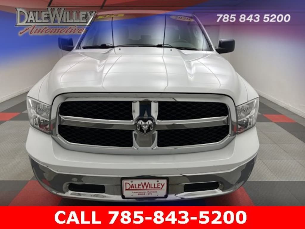 Located at Dale Willey Automotive Used Car and Truck Center / 2800 Iowa St, Lawrence, KS 66046. 2020 Ram 1500 Classic Bright White Clearcoat Tradesman 4WD 8-Speed Automatic HEMI 5.7L V8 Multi Displacement VVT CLEAN VEHICLE HISTORY...NO ACCIDENTS, FOUR WHEEL DRIVE 4WD, ONE OWNER, 1500 Classic Tradesman, 4D Quad Cab, HEMI 5.7L V8 Multi Displacement VVT, 8-Speed Automatic, 4WD, Bright White Clearcoat, Black Cloth, 1-Year SiriusXM Radio Service, 17 x 7 Aluminum Wheels, 40/20/40 Split Bench Seat, 5.0 Touchscreen Display, Bright Front Bumper, Bright Grille, Bright Rear Bumper, Carpet Floor Covering, Center Hub, Charge Only Remote USB Port, Chrome Appearance Group, Cloth 40/20/40 Bench Seat, Dual front impact airbags, Dual front side impact airbags, Electronic Stability Control, For More Info, Call 800-643-2112, Front Armrest w/3 Cupholders, Front Floor Mats, Fully automatic headlights, GPS Antenna Input, Manual Adjust Seats, Media Hub (USB, AUX), No Satellite Coverage w/AK/HI/PR/VI/GU, Occupant sensing airbag, Overhead airbag, Overhead Console, ParkView Rear Back-Up Camera, Popular Equipment Group, Quick Order Package 27B Tradesman (DISC), Radio: Uconnect 3 w/5 Display, Rear Floor Mats, Rear Folding Seat, Rear View Day/Night Mirror, Remote Keyless Entry w/All-Secure, SiriusXM Satellite Radio, Temperature & Compass Gauge, Tradesman Package.