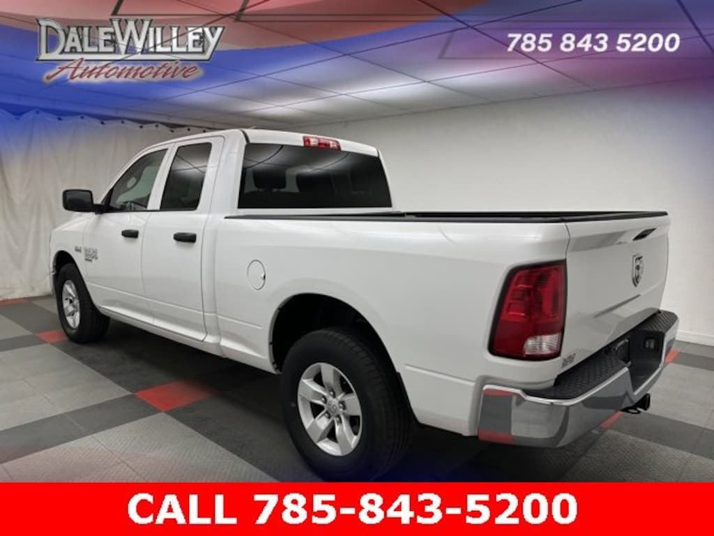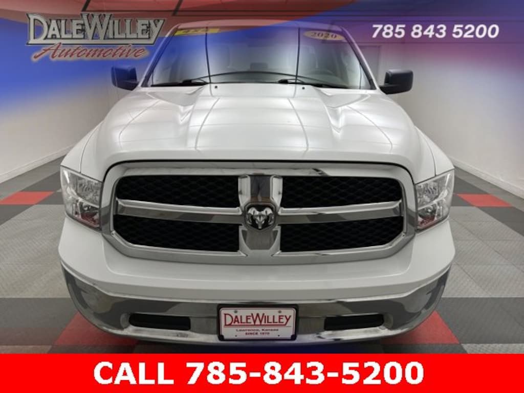 Located at Dale Willey Automotive Used Car and Truck Center / 2800 Iowa St, Lawrence, KS 66046. 2020 Ram 1500 Classic Bright White Clearcoat Tradesman 4WD 8-Speed Automatic HEMI 5.7L V8 Multi Displacement VVT CLEAN VEHICLE HISTORY...NO ACCIDENTS, FOUR WHEEL DRIVE 4WD, 1500 Classic Tradesman, 4D Quad Cab, HEMI 5.7L V8 Multi Displacement VVT, 8-Speed Automatic, 4WD, Bright White Clearcoat, Black Cloth, 1-Year SiriusXM Radio Service, 17 x 7 Aluminum Wheels, 40/20/40 Split Bench Seat, 5.0 Touchscreen Display, Bright Front Bumper, Bright Grille, Bright Rear Bumper, Carpet Floor Covering, Center Hub, Charge Only Remote USB Port, Chrome Appearance Group, Cloth 40/20/40 Bench Seat, Dual front impact airbags, Dual front side impact airbags, Electronic Stability Control, For More Info, Call 800-643-2112, Front Armrest w/3 Cupholders, Front Floor Mats, Fully automatic headlights, GPS Antenna Input, Manual Adjust Seats, Media Hub (USB, AUX), No Satellite Coverage w/AK/HI/PR/VI/GU, Occupant sensing airbag, Overhead airbag, Overhead Console, ParkView Rear Back-Up Camera, Popular Equipment Group, Quick Order Package 26B Tradesman, Radio: Uconnect 3 w/5 Display, Rear Floor Mats, Rear Folding Seat, Rear View Day/Night Mirror, Remote Keyless Entry w/All-Secure, SiriusXM Satellite Radio, Temperature & Compass Gauge, Tradesman Package, Under Rail Box Bedliner.