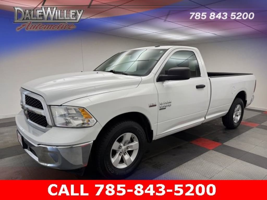 Located at Dale Willey Automotive Used Car and Truck Center / 2800 Iowa St, Lawrence, KS 66046. 2021 Ram 1500 Classic Bright White Clearcoat Tradesman RWD 8-Speed Automatic HEMI 5.7L V8 Multi Displacement VVT ONE OWNER, 1500 Classic Tradesman, HEMI 5.7L V8 Multi Displacement VVT, 8-Speed Automatic, RWD, Bright White Clearcoat, Diesel Gray/Black w/Cloth 40/20/40 Bench Seat or Cloth 40/20/40 Premium Bench Seat or Premium Cloth Bucket Seats, 17 x 7 Aluminum Wheels, 40/20/40 Split Bench Seat, Black Exterior Mirrors, Bright Front Bumper, Bright Grille, Bright Rear Bumper, Carpet Floor Covering, Center Hub, Chrome Appearance Group, Cloth 40/20/40 Bench Seat, Dual front impact airbags, Dual front side impact airbags, Electronic Stability Control, Exterior Mirrors w/Heating Element, For More Info, Call 800-643-2112, Front Armrest w/3 Cupholders, Front Floor Mats, Fully automatic headlights, Manual Adjust Seats, No Satellite Coverage HI/AK/PR/VI, Occupant sensing airbag, Overhead airbag, ParkView Rear Back-Up Camera, Popular Equipment Group, Power & Remote Entry Group, Power Heated Fold-Away Mirrors, Power Locks, Power Windows w/Front 1-Touch Down, Premium Vinyl Door Trim w/Map Pocket, Quick Order Package 27B Tradesman, Radio: Uconnect 3 w/5 Display, Remote Keyless Entry w/All-Secure, SiriusXM Radio Service, SiriusXM Satellite Radio, Tradesman Package.