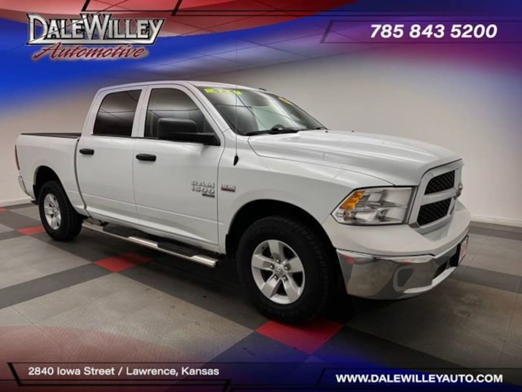 Located at Dale Willey Automotive Used Car and Truck Center / 2800 Iowa St, Lawrence, KS 66046. 2022 Ram 1500 Classic Bright White Clearcoat Tradesman 4WD 8-Speed Automatic HEMI 5.7L V8 Multi Displacement VVT FOUR WHEEL DRIVE 4WD, 1500 Classic Tradesman, 4D Crew Cab, HEMI 5.7L V8 Multi Displacement VVT, 8-Speed Automatic, 4WD, Bright White Clearcoat, 17 x 7 Aluminum Wheels, 2nd Row In Floor Storage Bins, 40/20/40 Split Bench Seat, Bright Front Bumper, Bright Grille, Bright Rear Bumper, Carpet Floor Covering, Center Hub, Chrome Appearance Group, Cloth 40/20/40 Bench Seat, Electronic Stability Control, Front Armrest w/3 Cupholders, Front Floor Mats, Fully automatic headlights, Manual Adjust Seats, No Satellite Coverage w/HI/AK/PR/VI/GU, ParkView Rear Back-Up Camera, Popular Equipment Group, Quick Order Package 26B Tradesman, Quick Order Package 29B Tradesman, Radio: Uconnect 3 w/5 Display, Rear Floor Mats, Rear Folding Seat, Remote Keyless Entry w/All-Secure, SiriusXM Satellite Radio, Storage Tray, Tradesman Package.